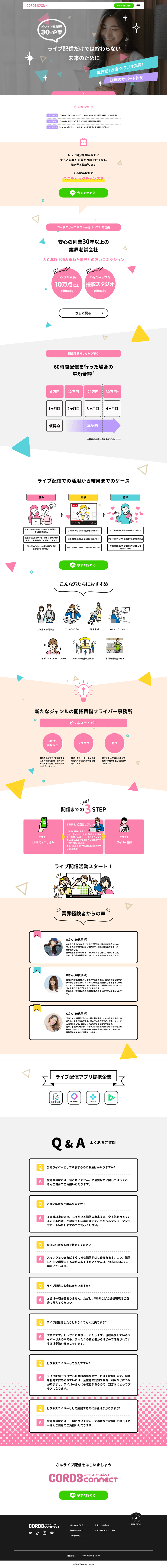 昨今需要が高まるライバーに向けて事務所登録を目的とした募集サイトになります。